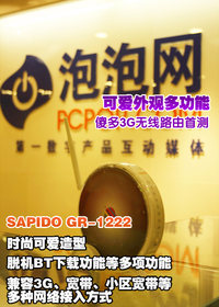 泡泡网无线频道12月17日 前几天我们为大家带来了一款,由台湾网络设备厂商SAPIDO出品的3G无线路由器GR-1102,凭借着小巧的身材、出色的多重供电模式,3G网络随时共享的特点,让人们一下子就记住了SAPIDO和它的中文译名“傻多”。 今天我们泡泡网无线频道又拿到了傻多旗下另外一款3G无线路由器GR-1222,这是一款非常出色的家用无线路由器,同样也支持各种网络接入方式