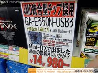 泡泡网主板频道2月18日 近期各大厂商争前恐后地展示、发布了多款AMD APU融合平台主板,然而并没有一款产品真正摆上卖场的,今天技嘉先拔头筹将自家的迷你APU主板摆上了柜台。 技嘉GA-E350N-USB3是第一款正式发布的AMD APU主板,采用17×17厘米的Mini-ITX迷你规格板型,搭载AMD Zacate E-350 APU双核心处理器、A50M FCH芯片组,