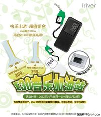 泡泡网MP3频道1月28日 进入2010年,韩国数码影音大牌iriver的酬宾优惠活动不断,近日针对E30推出了”音乐加油站”活动,即购E30产品送价值40元的POYA USB通用充电器,组成新春旅行套装。活动从1月28日正式开始,到3月28日结束,在此期间消费者购物都会享受超值优惠价:E30(2GB)+POYA USB通用充电器=299元;E30(4GB)+POYA USB通用充电器=3