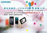 泡泡网MP3频道3月13日 一年一度的3.15国际消费者权益日即将到来,韩系数码影音大牌COWON积极响应号召,于10日起开展长达1个月的促销宣传活动,不仅赠送精美礼品,还广泛向用户宣传授权正品的购买查验知识。如果你不满足于一般的欣赏水平,且对产品及售后服务有严苛要求的话,本期“COWON全家福315推介”绝对不能错过,从中你将了解到有关产品的所有信息,马上开始吧! 活动——惊春送好