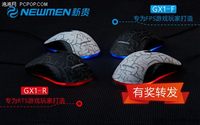 泡泡网鼠标频道5月3日 新贵2012年重磅新品GX1-F游戏电竞鼠标蓝光版劲擎上市。GX1系列是新贵专为电竞玩家量身打造的专业游戏鼠,有蓝光和红光两个版本,FPS和RTS两种核心引擎,新贵此款鼠标将致力于为游戏玩家打造强劲的第一手游戏装备。在5.1至5.5期间将此微博@三位好友,将有机会赢价值128元首批GX1新品鼠。 表面抽象线路图设计 鼠标表面采用水贴技术将抽象