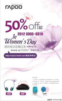泡泡网鼠标频道3月7日 三八妇女节既是一个专属于女性朋友们节日,也是一个向自己很重要的她表达感谢的日子,这个她或许是妻子、妈妈、婆婆、老师、领导抑或下属。为了感谢她平时对自己的照顾,送她几件流行的时尚礼物无疑能够让她感受到你的爱。值2012年女人节来临之际,雷柏电子特携超值无线外设促销大礼前来助兴,无论你是自用还是送她都非常的划算,赶快“换”醒无线时尚的流行魅力的吧! 活动时
