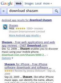 泡泡网手机频道6月4日 使用Android手机或者iPhone的用户很多时候都要从应用商店中搜索和下载喜欢的应用程序。但如果总是要去应用商店中搜索的话,很显然是一件非常繁琐的事情。 Google近日推出了一种新的搜索服务,只要用户使用Android手机或者iPhone访问Google页面搜索应用软