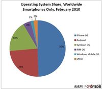 泡泡网手机频道3月29日 根据AdMob的最新统计显示,全球移动手机在上个月对互联网的访问中Android系统已经占到了总访问量的24%,而这一数值在去年仅为2%。 在所有的访问网络的移动设备系统中,iPhone OS还是当仁不让的坐到了头把交椅,其访问量占到了一半。而最大的“输家”是去年还占到将近一半份额的Symbian系统,其今年的2月的访问量只有可怜的18%了。