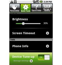 泡泡网手机频道6月19日 Android Market应用商店中有很多系统设置和系统优化相关的软件,但大多数的功能偏弱而且可靠性也不是很高。 最近T-Mobile开发了一款名为Device Tune-up的应用(该应用要求运行系统为Andorid 2.1)。使用该应用程序用户可以优化应用程序的运行