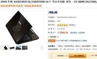 泡泡网笔记本频道2月28日 华硕K42EI38JZ-SL是一款14寸主流笔记本,采用了酷睿i3处理器、2G内存、320G硬盘,AMD Radeon HD6470M独显,性能非常不错,目前在新蛋网上特价仅售3849元,并赠送华硕原装电脑包一个,喜欢的朋友不妨关注一下。 具体配置上,华硕K42EI38JZ-SL笔记本采用英特尔 酷睿 i3 380M处理器(2.53GHz主频/3MB