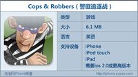 泡泡网iPhone频道12月20日 Cops & Robbers(警匪追逐战)是GLu出品的一款3D画面警匪追逐游戏,游戏的时间设定在晚上,画面色调偏暗,不过这样却凸显出了更好的气氛,是款不错的休闲游戏。游戏目前免费。 点此启动iTunes下载 游戏在整体上体验不错,就是画面的色调偏暗了些,初次游戏需要一定的适应时间。游戏的画面,受游戏体积的限制,虽然是3D,但表现还是差了