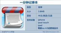 泡泡网iPhone频道11月10日 你是不是遇到过这种情况?脑子里突然灵机一动想出个好点子,想到个重要的事情,手忙脚乱,纸笔全无?如果经常有这种情况,那么以下这款小巧的软件就是为你准备的。 该应用目前限时免费,下载请点击这里 这款应用叫一分钟记事本,它可以快速的记录下你的创意和工作事项,一键发送到你的电子邮箱,而完成这一切大概只需要一分钟!。 应用的主要功