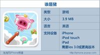泡泡网iPhone频道1月12日 是不是跟朋友一块儿玩的时候常遇到需要选择的情况,于是乎,猜拳、掷骰子等活动便被搬了出来。不过,如果有了本文要介绍的应用,我们就可以更方便地做出选择。 应用名字叫“谁是猪”,呃,想象一个情景,一堆人在争——“你是猪!” “你才是猪呢”!在你和你的朋友们为“谁是猪”这个古老问题争论不休的时候,这个神奇的app能告诉你谁才是真正的“猪”!哈哈,这个