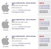 泡泡网iPhone频道1月17日 近日,有人在百思买(BestBuy)的网上商城上查看库存表时,惊讶的发现即将到后的Wifi版iPad出现了两个价格,分别是$599和$699。也许这暗示着零售商正在为将要发布的iPad 2做准备。 目前在百思买上,你还可以购买到iPad已经上市的六个型号。据查,现有的iPad 64G wifi版的SKU编码为9811424,而即将到货的iPa