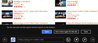 泡泡网笔记本频道2月1日 据国外媒体报道,近日IEBlog展示了IE10 Metro版对需要插件的网站处理办法,从中我们可以看出IE10的Metro版将不支持插件功能。 Metro版IE10将不支持插件功能 据悉,在用户访问需要插件的网站时,浏览器会在底部弹出一个对话框,要求用户切换到台式机模式的IE。对此,微软表示IE10不支持插件可以节省电池寿命,并可保障安全性、可靠性