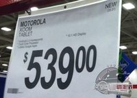 泡泡网资讯频道3月4日 苹果iPad2升级不涨价,外加iPad狂降100美元,虽然乐坏了不少平板消费者,同时也把竞争对手逼向另一个绝境。据外媒报道,摩托罗拉正计划将无3G版本Xoom平板电脑售价降至539美元,以抵制苹果的凶猛攻势。 被曝光的疑似摩托罗拉Xoom平板电脑降价照片 有媒体报道称,一位山姆会员商店的内部人员刚刚曝光了几张摩托罗拉Xoom平板电脑的降价促销照片,照