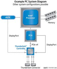 泡泡网主板频道2月25日 Intel今天向外界公布了超高速外设接口技术Thunderbolt。Thunderbolt技术由Intel开发,通过和苹果的技术合作推向市场。该技术主要用于连接PC和其他设备,同时支持PCI-E和DisplayPort两大业界标准协议。两条通道可同时传输这两种协议的数据,每条通道都提供双向10Gbps带宽。 “Thunderbolt技术的设计目的是为