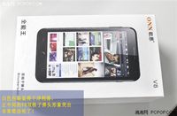 泡泡网平板电脑频道9月16日 近期欧恩的创新新品V8双核子弹头可谓是炒的沸沸扬扬,平板手机的完美跨界、双核双卡双待、5寸超薄机身、还有优化通话体验等等,无一不让人心动。随着众多媒体报道欧恩V8双核子弹头上市和到货的消息后,某论坛网友入手机器后曝光了开箱靓图,与大家共同分享。 相比较其他品牌花花绿绿的外包装,欧恩V8双核子弹头则延续了一贯的简洁作风,白色包装显得干净利落,而
