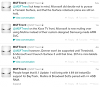 泡泡网平板电脑频道1月12日 根据最新谣传称,下一代的Surface设备将会搭载64位“Denver”版本的Nvidia Tegra K1处理器,并且有望在今年年底正式发布。除了Surface 3之外微软还将会推出Surface mini版本,采用7.5英寸的显示屏,并支持4G LTE网络。 此外在信息中还有所谓的“Xbox TV”曝光,表示微软正在考虑使用AMD的“Mullin