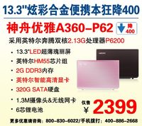 温子龙 · 2011-10-21 00:11 - 13吋双色合金本神舟A360-P62仅售2399