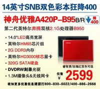 温子龙 · 2011-10-25 00:18 - 狂降400!神舟A420P-B95惊艳价2599元