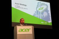 泡泡网笔记本频道1月10日 在CES2012开幕前,Acer于美国当地时间1月8日举行盛大的发布会,公布了全新的Acer Aspire S5超极本新品(点击查看相关新闻报道)、Timeline Ultra系列新品(点击查看相关新闻报道)以及名为“AcerCloud”的Acer云服务(点击查看相关新闻报道)。 Acer宏碁CEO王振堂在发布会上演讲 Acer此次发布的新产