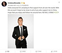 叶亮 · 2016-05-17 09:42 - 顶级球星C罗开通微博:代言nubia手机