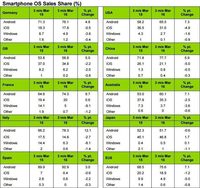 Kantar提供的最新统计数据对于Windows Phone用户来说是个坏消息。这份统计数据显示,微软手机操作系统市场份额在截至3月16日的今年第一季度继续下滑。更糟糕的是,Windows Phone份额下降发生在几乎每一个单一大市场,从美国市场到之前很受欢迎的欧洲市场均是如此。 统计数据显示,Windows Phone在以前最成功的国家当中市占率下降幅度最大。Windows手机在法国的市场