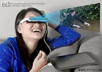 泡泡网平板电脑频道11月1日 乔布斯的苹果家族一直都在改变我们的世界,iPhone、iPod、iPad等设备不仅大大方便了我们的学习、工作,同时也提供着娱乐消遣等功能。因此很多苹果周边产品也是层出不穷。这款荧幕放大眼镜是专为苹果产品而设计的配件。 只要将眼镜连接到iPad、iPhone或iPod设备,就可以在你眼前呈现虚拟的60英寸的巨大屏幕,让你享受犹如