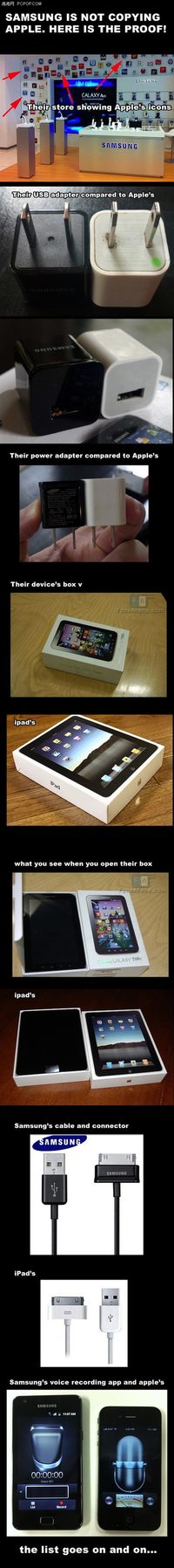 泡泡网平板电脑频道9月30日 三星苹果专利纠纷案愈演愈烈,孰是孰非,我们不方便加以点评。但是,近期,苹果公开了一组照片,照片中展示了苹果一系列相关产品与三星对应产品的细节对比。 比如USB连接线,Power Adapter甚至是产品包装都抄袭的淋漓尽致。我们先来看看这些照片: 之前还觉得苹果有些仗势欺人,现在看来,真的不能来苹果,这绝对是赤裸裸的抄袭啊!悲催的苹果啊!我们