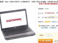 泡泡网笔记本频道5月16日 ● 产品型号:惠普 CQ43-102TX(LR803PA) (报价 参数 图片 评论 ) ● 产品现价:2899元 ● 购买链接:京东商城 ● 编辑点评:这是一款很特殊的笔记本电脑,笔者刚看见的时候也很惊讶。首先,它的型号叫CQ43;其次,它的处理器是双核酷睿P6300,并非常见的P6200或P6100;最后,它配备了3GB内存,不是2GB也不是4GB