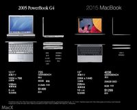 今年3月初苹果发布新MacBook的时候,有网友称终于等到苹果12英寸笔记本机型了,但其实在10年前苹果就发布过一款12英寸本--PowerBook G4,当时的广告宣传语是全功能笔记本。这款曾经的经典支持SuperDrive光驱,可以安装iMovie应用,支持火线接口。( 注:图片来自MacX.cn) 随着时间的推移,现如今的2015款12寸Retina MacBook,性能的