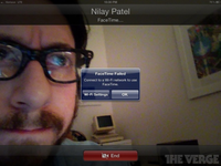 泡泡网平板电脑频道3月16日 据国外媒体The Verge报道,尽管新款iPad支持LTE 4G网络,但可惜的是它并不支持Facetime通话。从文章中的图片可以看到,用户尝试在4G LTE网络下打开Facetime,但一直没有成功,并且会被提示需要连接到WiFi。 乔帮主曾在2010年推出iPhone 4时表示:“FaceTime虽然目前只能工作在WiFi的网络环境下,不过