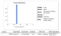 泡泡网平板电脑频道3月20日 据国外媒体报道,近日索尼的一款型号为V150的产品出现在基准测试网站NenaMark上。据业内人士分析,这极有可能是索尼Tablet S升级版本。从目前曝光的信息来看,V150采用了主频为1.4GHz的Tegra 3四核处理器,屏幕分辨率为1280x752,搭载安卓4.0.3系统。 虽然曝光的跑分图没有明确指出该款设备属于何种产品,但是从其分辨率