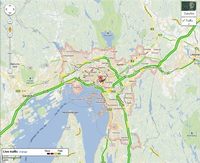 泡泡网资讯频道3月21日 近日,谷歌公司宣布,位于香港、新西兰和挪威的用户现在可以通过谷歌地图查询到当地的实时路况信息了。这对于经常开车出行并受到堵车困扰的人们绝对是个好消息。 谷歌地图最早在美国30多个主要城市推出了实时路况查询功能,之后在中国各大主要城市也陆续开放了这一功能。目前,用户还只能查询到“主要城市和高速公路”的实时路况信息,谷歌正致力于扩展和改善此项服务,希望不