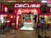 在COMPUTEX 2005展会上,台湾精星科技(GECUBE)也有自己不小的地盘。展示的产品也包括ATI最新采用Crossfire技术的双X850XT显卡。 正在准备的精星展区 展柜中陈列的ATI高端显卡 技术人员正在安装展示用样机 组建完成的ATI双X850XT显卡