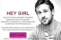 泡泡网8月27日 是不是很厌倦总是在你的脸谱网信息Feed里面总是看到你朋友孩子或者宠物的照片?讨厌所有那些Instagram上所谓模特“偷拍”的照片?你可以解除与他们的好友关系或者完全退出社交网络媒体,还有一种选择是你可以通过安装谷歌Chrome浏览器上的Hey Girl插件把自己沉浸在对著名演员瑞恩 高斯林仰慕之中。 Hey Girl是由Katherine Champ