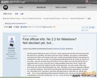 泡泡网手机频道7月24日 MOTO新一代机王Droid X发布之后,Motorola欧洲市场经理在其个人Facebook博客中提到,做为上一代MOTO旗舰机,Milestone还没有决定是否提供2.2版本的升级ROM。此话一出立刻激怒了世界众多Milestone的用户,甚至很多国内机锋网的Milestone(里程碑)用户已经跑到Motoro
