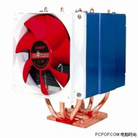 IceBerg,顾名思义“冰山”。从外貌看,九州风神SNOWMAN IceBerg的确具备了冰山威严耸立的气势。在一个纯铜底座上竖立着三根U型热管,它们平衡支撑着铝Fin散热片、风扇底座(散热片罩)和侧风92×92×25mm风扇,给人一种气势磅礴之感!九州风神SNOWMAN IceBerg的色调整体搭配相得益彰,充满了时尚气息。铜底和热管呈红铜色、插入铝Fin散热片的银灰色、配以蓝色的罩子