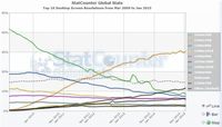 泡泡网液晶显示器频道1月21日 现在什么分辨率会是桌面PC的主流呢?如果仅以我们身边来看,1080P级别分辨率显然是主流,更高的2560*1440甚至是4K分辨率也逐渐进入我们的生活中。然而有来自市场调研机构StatCounter的数据显示,以全球范围内的用户数量而言,1080P分辨率还算不上主流,在今天1366*768分辨率才是用户最多的。 StatCounter统计了自2009年