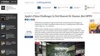 近日,美国著名商业杂志《福布斯》刊文一篇,标题为《Apple's China Challenger Is Not Huawei Or Xiaomi, But OPPO》,其指出手机制造商OPPO今年在中国市场的表现突出。文中略带夸张地认为OPPO已经成为了苹果在中国的主要对手,但同时也肯定了OPPO出色的市场表现,十分耀眼。 福布斯发文《Apple's China C