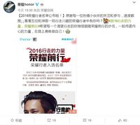 7月29日,2016行走的力量荣耀行者志愿者名单出炉,5名从近1200份报名的荣耀粉丝中脱颖而出的志愿者,将与陈坤一起于8月中旬参与行走。6月13日,知名艺人陈坤发起的心灵建设类公益项目“2016行走的力量”在京宣布启动,荣耀作为全程合作伙伴与陈坤再度携手同行。此次荣耀品牌为荣耀行者准备了行走背包,其中荣耀V8作为荣耀指定行走的力量使用手机,将跟随荣耀行者全程参与行走。 与2015年