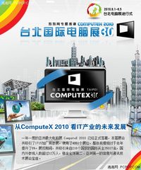 泡泡网显卡频道6月4日 拥有30年历史的台北国际电脑展(COMPUTEX)是全球第二、亚洲最大的国际电脑展,也是亚洲地区最大的B2B贸易平台。2010年6月1日至5日,第30界COMPUTEX将在台北市世贸中心南港展览馆、世贸展览一馆/三馆及台北国际会议中心拉开帷幕。今年有超过1750家厂商报名参展,使用4700个摊位。分别比去年增加50家