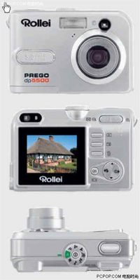 德国传统相机制造巨头禄莱(Rollei)于近日发布了一款便携型的数码相机 Prego dp5500。该款产品配有一枚500万像素的CCD及1.8英寸的TFT液晶屏幕。它具有3倍光学变焦能力(5.4–16.2 mm),最大光圈为2.8-4.8,可录制320 x 240 pixels (20 fps)有声短片。从配置中我们不难看出这是一款面向中低端用户的DC,与其系列产品dp6000及dp52