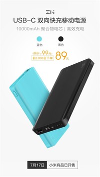 网络 · 2018-07-17 21:09 - 双向Type-C快充:紫米新款10000mAh移动电源上架