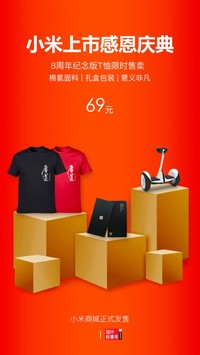 网络 · 2018-07-12 18:57 - 69元!小米8周年纪念版T恤限时售卖:一件包邮