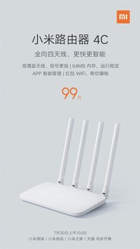 网络 · 2018-07-27 17:03 - 99元!小米路由器4C发布:四天线/红包Wi-Fi能赚钱