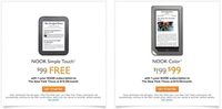 泡泡网电子书阅读器频道1月11日 Barnes & Noble 在 1 月 9 日宣布推出新的促销活动,从即日起至 3 月 9 日,订阅《纽约时报》电子版一年(19.99 美元/月)的用户,可选择免费获取 Nook Simple Touch 电子书阅读器,或是以 99 美元的价格购买 Nook Color 阅读平板。 另外,订阅《People》电子版一年(9.99 美元/月)