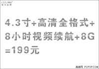 泡泡网MP3频道11月16日 没有最给力,只有更给力。驰为新P7系列产品不断突破自我,领航未来。高配置引领价值典范,高性价比引曝价格底限。以199元产品P7EOS X和299元产品P7EOS T为核心,推出一个又一个给力产品,给力无限,无限给力。 P7EOS X 价格:8G/199元关键词:4.3英寸屏、8小时续航、8GB容量 P7EOS X支持以MKV、MP4、RM、R