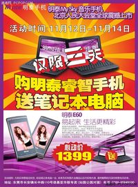 程超跃 · 2011-11-11 11:37 - 买手机送笔记本!明泰多款机型促销中
