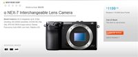 泡泡网数码相机频道12月18日 索尼NEX-7机身已经在加拿大sony store官方网站上架,售价为1199.99美元(约合人民币7599元)。但当我打开加拿大sony store官网时显示NEX-7已经脱销——这也太快了吧!■