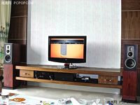泡泡网音频频道9月28日 比较喜欢我目前的家居摆设的,但是有一点不是很满意就是电视,看上去还是小了很多,与音响搭配起来总是感觉少了些什么,因为这个比例实在有点不协调了。所以在未来的一段时间如果有充足的时间和精力的话,我会选择换一个新的电视,最好是超大尺寸60多吋的应该差不多了。可以看一下,机柜背景墙和音响的搭配是否合适,惠威RM1000箱体造型规整,侧面红色木皮材料,质感细腻温润,和整个家