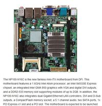 [泡泡网主板频道7月9日]来自多家国外媒体的证实,DFI近期推出了一款新品无风扇Mini-ITX整合主板,搭载Intel Atom N270处理器,945GSE+ICH7M芯片组。相比近来ION离子平台Mini-ITX主板的丰富功能,这样的产品看起来朴素了不少,不过成本肯定也会相应有所降低。 DFI新品NP