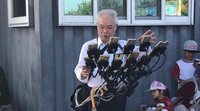 当年红极一时的《精灵宝可梦 GO》席卷全球一段时间后现在又开始活跃起来,曾经因自制11支手机架挂在自行车上一字排开而走红的狂热台湾抓宝可梦老人陈三元最近又升级了装备。